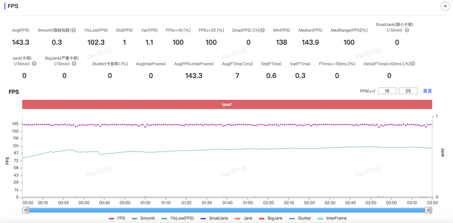 游戏测试部分我们选取《使命召唤手游》和《原神》两款游戏作为测试项目。《使命召唤》手游在vivo Pad3上已经支持144帧模式,经过一局多人对战由Perfdog测得平均帧率143.3 FPS,游戏过程相当流畅,充分发挥出144Hz高刷屏的优势。