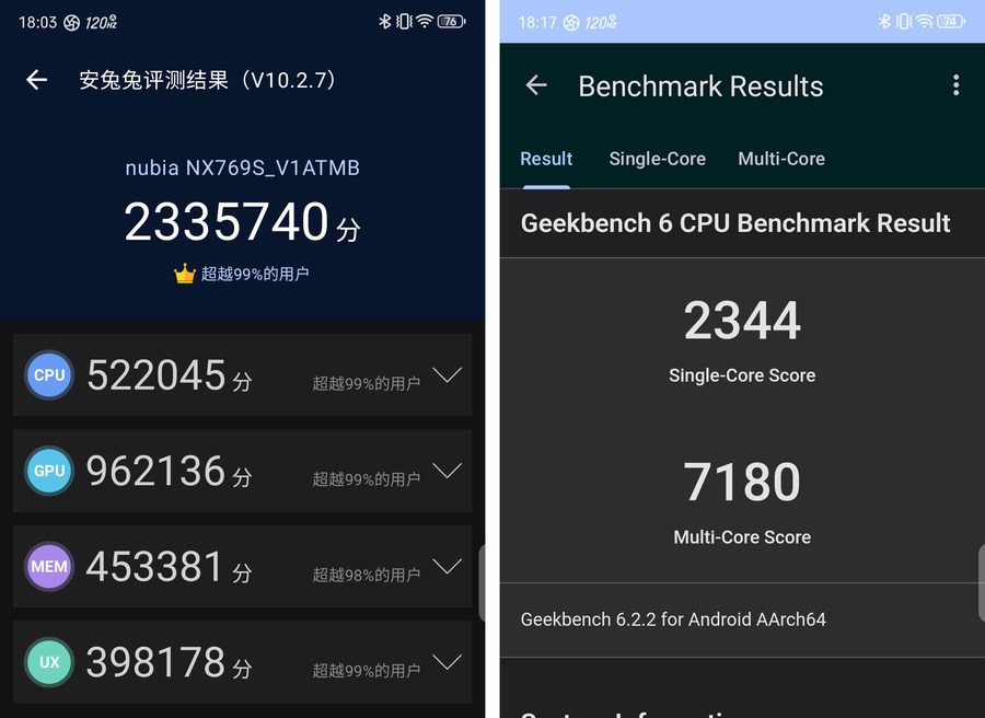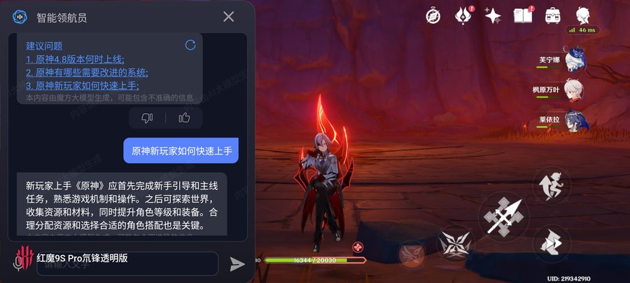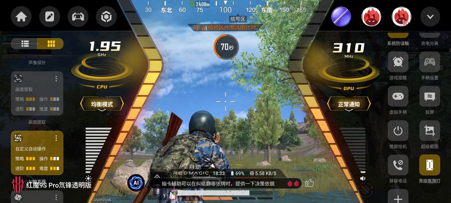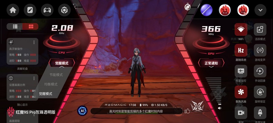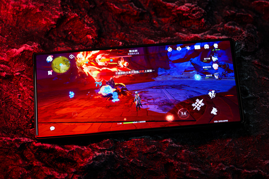 随着智能手机性能的不断提升,游戏手机市场的竞争变得越发激烈,而红魔手机一直以来凭借着专注于优化游戏性能与体验的理念,赢得了广大游戏爱好者的好口碑。今日,红魔正式推出了全新的红魔9S Pro电竞手机,不仅拥有强大的性能,还带来了行业技术的创新。 这次红魔9S Pro电竞手机的最大亮点之一是业界首次搭载高通骁龙8 Gen 3领先版移动平台,为我们提供前所未有的流畅游戏体验。此外,红魔9S Pro还特别强调了"AI游戏手机"的概念,其搭载了红魔魔方AI大模型,拥有1600亿个参数和超过2万个场景的训练,能够实现快速响应和自主学习,提供更加个性化和智能化的游戏体验。接下来,让我们一起来看看红魔9S Pro在实际表现中如何吧! 背部纯平设计 氘锋版延续经典 从红魔9S Pro的产品型号中不难看出,这款手机算是去年11月份发布的红魔9 Pro系列小改升级款,所以整体外观以及尺寸保持一致,继续将极简科幻发挥到了极 致。同时,凭借着业内顶尖的堆叠工艺完 美演绎了超未来主义美学,红魔9S Pro也依然是行业中非常罕见的背部纯平的手机。而此次我们评测的是红魔9S Pro“氘锋透明暗夜”,此外还有“暗夜骑士”、“氘锋透明银翼”,以及之后还有一款神秘的白色特别款。 红魔9S Pro的镜头模组放在了左上角,但一反行业摄像头模组越发凸起的常态,将背部机身做成完全纯平状态,成为当下手机行业唯 一背部纯平的旗舰手机。这样纯平的设计对于游戏手机上非常合适,握持时没有了摄像头模组玩游戏更舒服,看视频也不会有硌手的情况出现。 金属的直角边框一直都是红魔电竞手机在设计上的一大亮点,红魔9S Pro也不例外,而且在一些细节方面又得到不小的升级,让其始终保持“超大杯”的使用体验。比如除了电源键、音量键,还有两段式竞技键开关和行业最为快的触控双肩键,还有炫酷的肩键灯效和实用的3.5mm耳机孔等,让玩家的操作更丝滑更有激情。 音量键、电源键与两段式竞技键 触控双肩键 进入游戏后亮起等效 保留玩家必备的3.5mm耳机接口 这一次红魔9S Pro依然采用了主动式散热设计,从边框能够看到红魔9S Pro的散热风扇进出风开口,风扇有着可编辑的RGB灯光,并且从固定灯光颜色升级为可自定义RGB灯光。并且红魔9S Pro风扇的转速也得到升级,至高可达22000转/分钟,流量更大导热能力更强;风扇外框材质也升级为合金,导热能力提升30%;此外,之前红魔9 Pro手机背部的“09”字样则变成了“9S”的标识。 骁龙8 Gen 3领先版标识,型号LOGO升级为“9S” 招牌的物理散热风扇,可自定义编辑RGB灯光 屏幕方面也是红魔9S Pro的一大亮点,不仅继承了业界领先的屏下摄像技术,延续无刘海无打孔的真全面屏,而且搭载的是第六代屏下超竞全面屏,采用京东方新研发的屏下Q9+发光材料,不仅视觉体验更优秀,前置摄像头隐藏更好,而且自拍体验更加优秀。简单来说,相较于前代Q9屏幕,Q9+材质在多方面实现优化,包括色彩准确度提升、暗部显示效果增强、亮度更高、显示均匀性更好以及减少屏幕残影,进一步提升了视觉体验。 93.7%屏占比,四边都是超窄边框 第六代屏下超竞全面屏,完全看不到前置镜头 红魔9S Pro搭载的这块6.8英寸AMOLED屏幕达到2480×1116分辨率(2K),具备10.7亿色显示能力以及10bit色深,局部至高亮度达到1600nit,相比上代提升23%,并且采用了2160Hz的高频PWM调光,同时兼容DC调光模式和HDR10+显示标准。 性能机皇 首发骁龙8 Gen 3领先版 高性能一直都是红魔电竞手机的追求,这次红魔9S Pro再次引领安卓阵营性能巅峰,全球首发搭载高通骁龙8 Gen3领先版移动平台,CPU主频跃升至3.4GHz。骁龙8 Gen3领先版是对标准版骁龙8 Gen3的小幅升级款,处理器配置为1颗3.4GHz的Cortex-X4超大核,搭配5颗2.96GHz Cortex-A720高性能核心及2颗节能的2.27GHz Cortex-A520核心。 在安兔兔V10.2版本跑分测试中,红魔9S Pro实测成绩达到233+万分的出色表现;同时,在Geekbench 6中单核成绩超过2300+分,多核成绩也达到了7180分,综合性能无疑是目前安卓阵营的前列,尤其是在同价位段甚至一些旗舰机中,红魔9S Pro完全可以称得上是性能之王。并且,为了匹配其强大的处理器,红魔9S Pro手机还配备了LPDDR5X运存+UFS 4.0闪存组成黄金性能铁三角,确保了数据传输速度和多任务处理能力,让游戏加载和切换更加迅速,直接给大家满血体验,满足重度游戏用户的需求。 《原神》支持超高清细节显示与60帧模式 《原神》手机端原生分辨率只有720P,但红魔9S Pro不仅在性能调度和图像绘制方面表现出色,同时还在软件层面突破了游戏内容和硬件的限制,可实现超级分辨率,直接将《原神》720P的画质提升到2K+(1674P)的效果,大大发挥这块第六代屏下超竞全面屏的优势,让我们在玩游戏时体验到更清晰、更细腻的画面。 原生画质(左)与开启超分后画质(右) 从实际的对比可以看大,开启超分后的红魔9S Pro显示的游戏画面不仅整体画质更加精细,游戏角色的服装、头发等边缘更立体、锐利,细节也更为丰富,能很好的实现更高分辨率效果和抗锯齿等清晰度的增强,弥补原生画质只有720P的遗憾。 实际的游戏体验中,我们使用红魔9S Pro将《原神》画质调到最.高,并且开启60帧率模式。通过PerfDog记录结果显示,在将近40分钟的游戏过程中平均帧率高达59.8,跑图场景帧率可以说是非常的稳定,几乎没有任何明显波动;即便是下副本战斗场景时也都可以稳定运行,帧率波动也很小,而且这个游