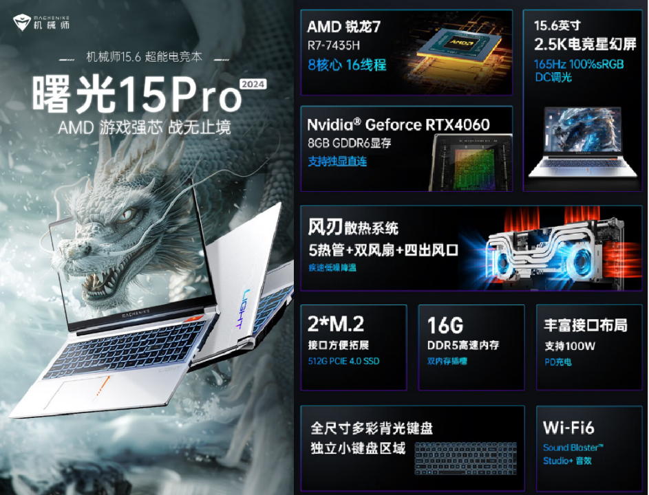 曙光15Pro 2024,凭借其强大的内核、卓越的显示效果及人性化的外观设计,无疑是追求性能与体验平衡用户的理想之选。更多产品详情,敬请访问机械师京东自营官方旗舰店。更多新品资讯、产品官方信息,可关注机械师官网QQ交流群入口(https://www.machenike.com/qqun),开启属于您的玩酷电竞的新篇章。