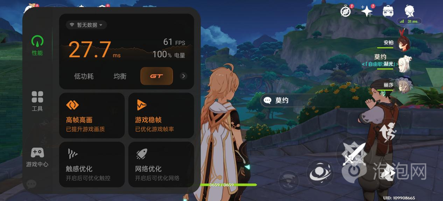 使用真我GT6运行《原神》,还可以在默认高画质的情况下以60帧的帧率进行游戏,开启超高画质与极限稳帧功能后,既可以保证画面出色,同时也可以让游戏稳定在60帧的帧率。同样,也建议配合散热器进行游戏,从而确保高帧高画功能的持续开启。