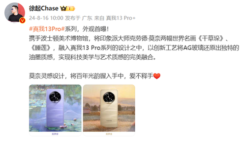 今天,realme副总裁徐起正式揭晓了真我13 Pro系列的外观,此次新机设计灵感源自印象派大师克劳德·莫奈的传世之作《干草垛》与《睡莲》,realme巧妙地将这两幅名画中的色彩与意境融入手机设计之中,创造出“莫奈灵感设计”。