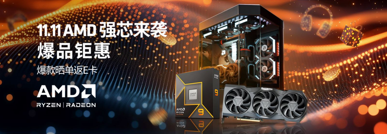 一年一度的京东商城11.11全球好物节将于今晚20点正式开启,相较于往年,今年的大促时间又提前了,对于已经有规划购买各种好物的消费者来说真的可以准备起来了,到点直接开抢。AMD(超威)今年在京东商城自营旗舰店也将同步开启11.11大促,并且将每一个活动阶段展现在了DIY用户面前,大家可以按照自己的节奏参与此次长达一个月的年终大促,下面就为近期准备攒机的朋友们整体介绍一下此次AMD的活动。