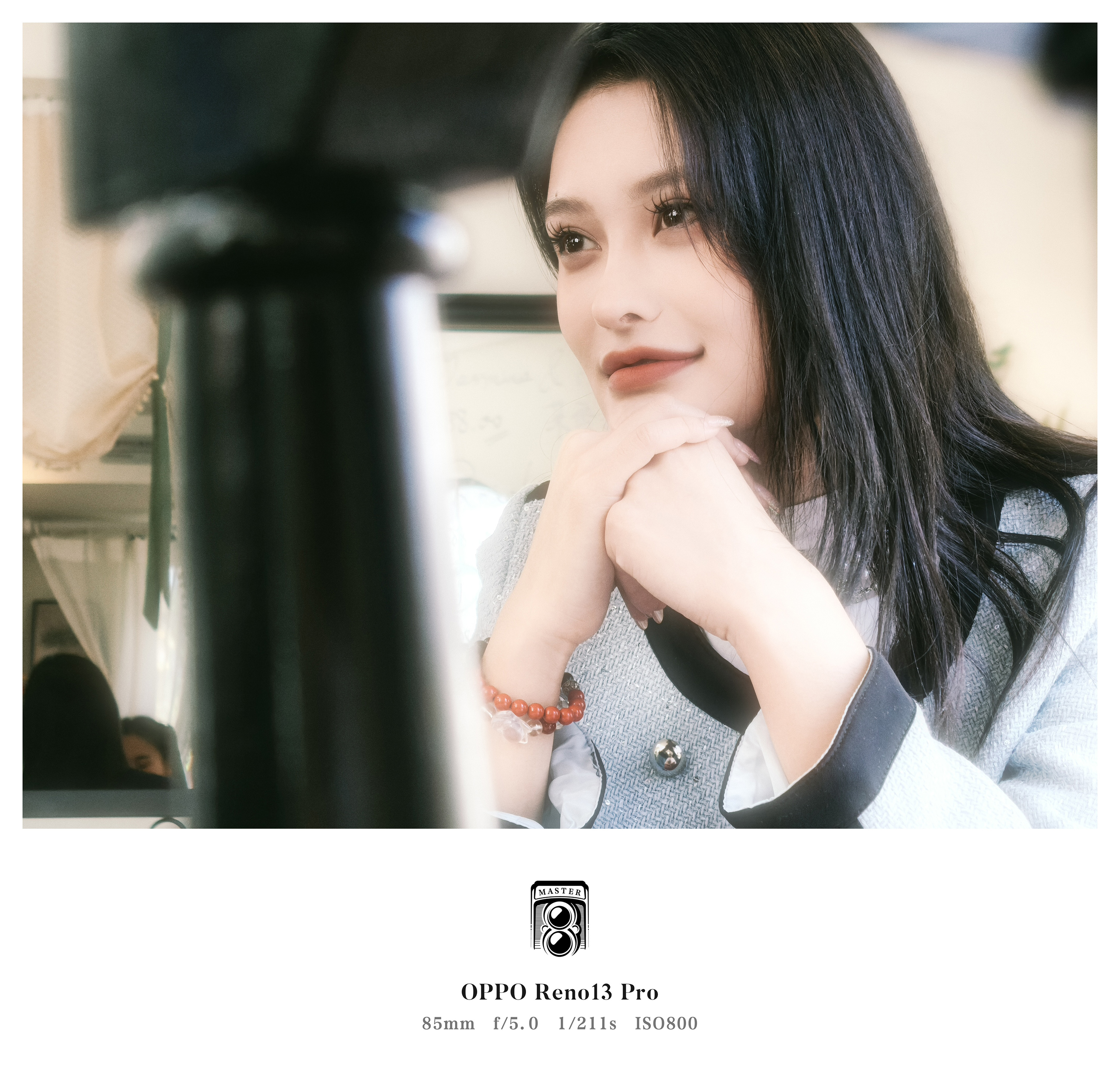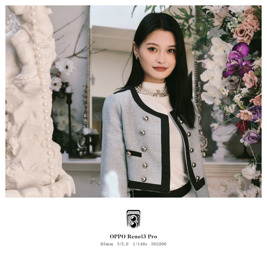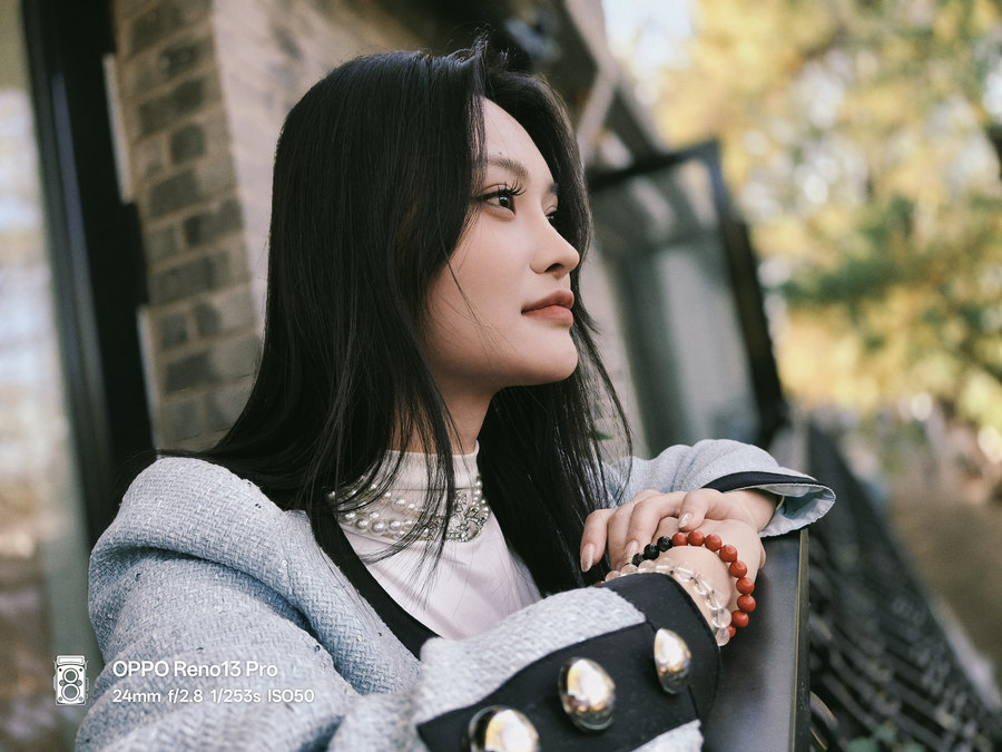 此外,Reno13 Pro还配备了85mm黄金焦段的人像镜头,这个焦距特别适合拍摄半身人像和人物特写,能够实现柔美的背景虚化和清晰的人物焦点。在拍摄过程中,Reno13 Pro精准的虚化效果,让人物与背景的空间关系得到了完 美的呈现,尤其是在拍摄模特的碎发和细节时,边缘处理相当精细,避免了常见的虚化不自然的现象。