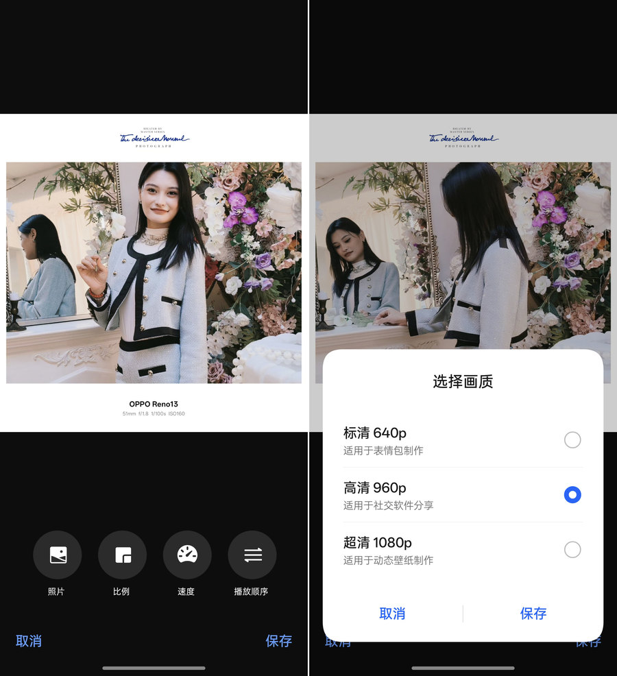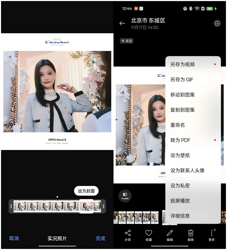 OPPO Reno13系列拍摄的实况照片可以另存为视频或GIF动图