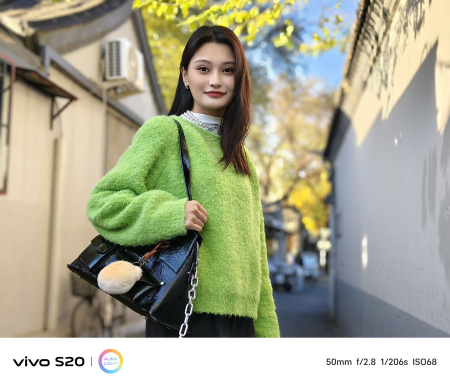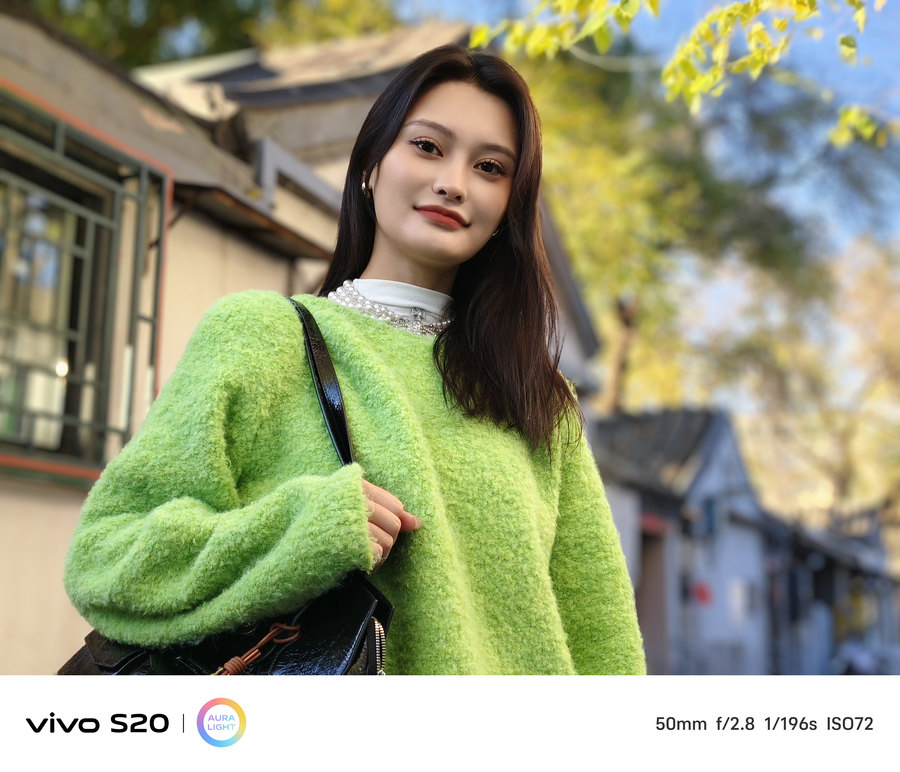 人像拍摄一直都是vivo S系列的一大优势,这次vivo S20凭借其5000万像素主摄的优势,进入人像模式后,默认启用2X焦段进行拍摄,保证即使经过裁切,仍能保持照片的清晰度和细节,拍摄出细腻的人像照片。50mm的等效焦段非常接近人眼视角,拍摄出的半身像更加自然。vivo S20在拍摄人像时的背景虚化效果也非常自然,能够将人物主体与背景更好地分离,同时保留头发、衣服材质等细节,呈现出非常丰富的层次感。通过AI算法与两颗镜头的协同工作,vivo S20能够精准计算深度信息,呈现出更自然、真实的渐进虚化效果。