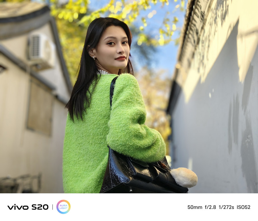 在日常拍摄中,vivo S20的成像表现同样令人印象深刻。无论是在户外阳光充足的环境下,还是在室内复杂光线条件下,vivo S20都能够通过智能优化调节,确保每张照片都呈现出色的色彩和细节,展现出高水平的影像质量。尤其是其主摄采用的VCS人眼仿生传感器,在不增加传感器尺寸的情况下,通过改进像素光学结构和滤光片材料,使得拍摄效果更加接近人眼视觉,无论在低光环境还是逆光条件下,都能够拍摄出清晰、纯净的照片。