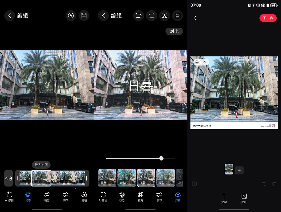 此外,华为Mate X6还支持拍摄LivePhoto实况照片,支持后期处理和自定义选择封面帧,并且能够上传到小红书,让社交动态更加多彩。