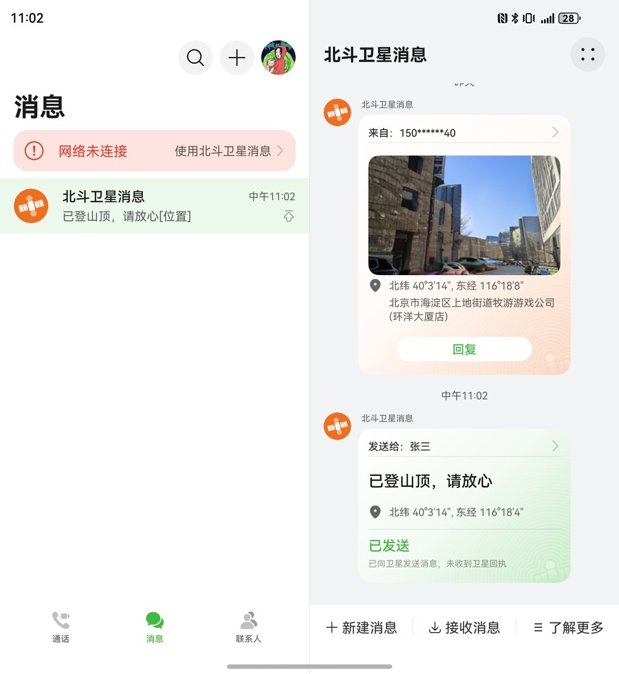 基于华为畅联APP,用户还可以使用北斗卫星消息与其他人进行沟通,在发送消息时还可以附带经纬度信息,让对方可以快速定位你的位置。而且相比前代产品,华为Mate X6系列的搜星速度,消息发送速度也明显更短,通信效率明显提升。