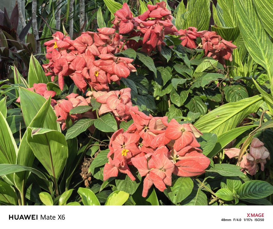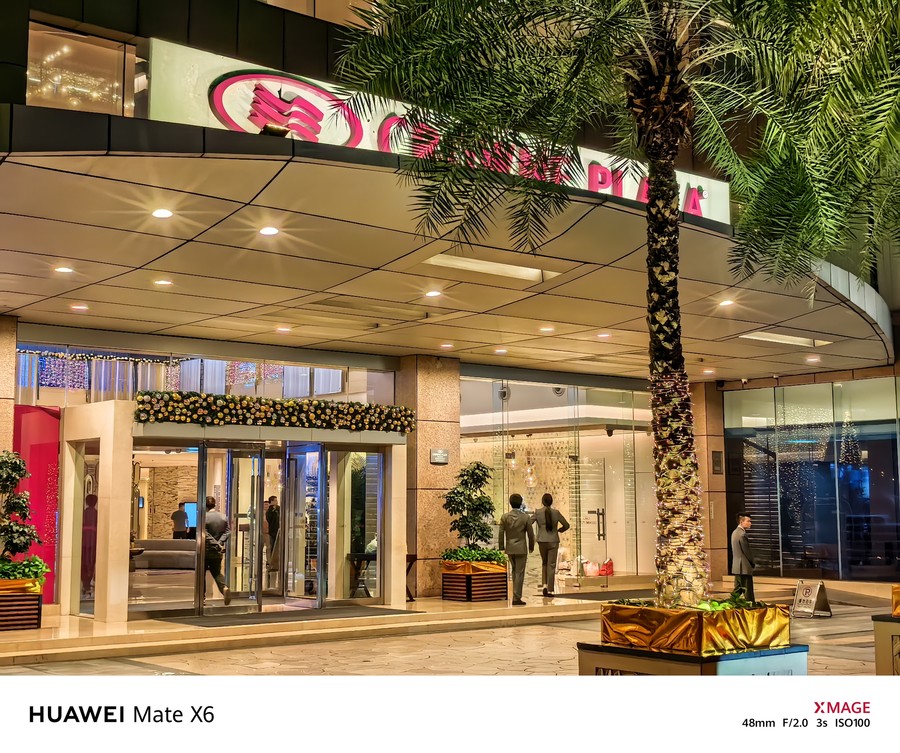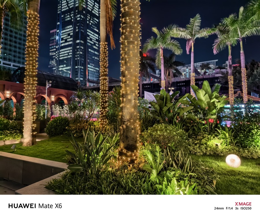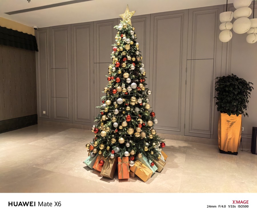 比如在拍摄户外阳光下的植物时,华为Mate X6能够精准地还原出阳光照射下植物表面的温暖色彩,画面色彩整体表现十分通透,富有层次感,更加接近肉眼所见的视觉效果。而在拍摄室内暖光灯下的圣诞树时,画面中也没有出现偏色的情况,每一件装饰品的色泽与表面质感都得到了精准还原,并没有受到灯光颜色的影响。