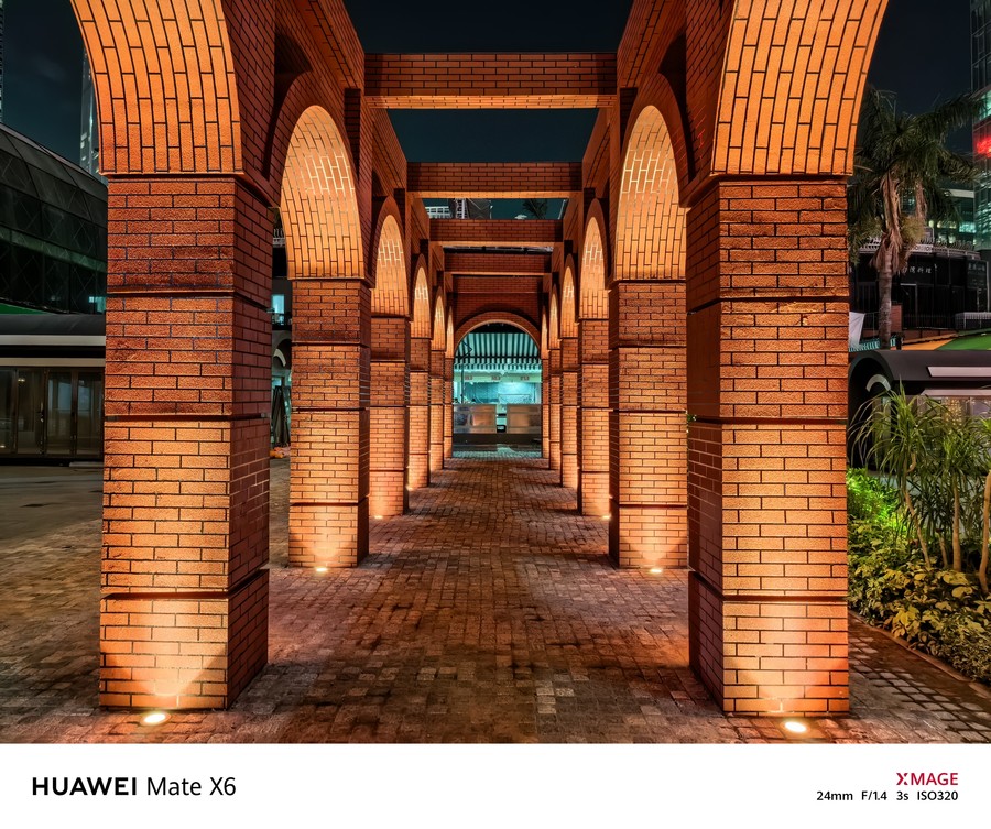在夜景拍摄时,镜头表现也非常一致。画面并非暴力提亮,而是很好地还原出真实场景的光感,画面有着很高的宽容度,暗部细节得到更大程度地保留,高光部分也得到了有效压制。