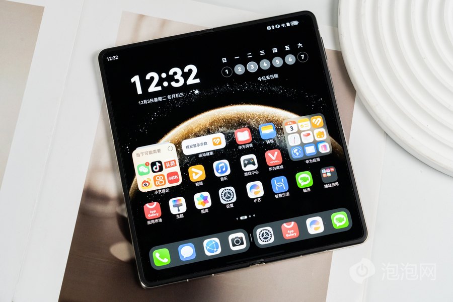 值得一提的是,我们这台华为Mate X6典藏版的外屏还采用了第二代玄武钢化昆仑玻璃,抗磨耐刮能力有着16倍的提升。内屏则全系采用复合叠层结构设计,支撑层则采用了碳纤维材质,轻巧又耐用,有着更强的抗形变能力。