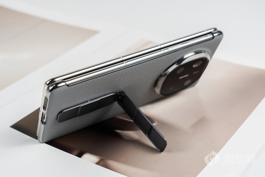 手机附赠的旋转支架保护壳不仅质感十足,还能在不同角度下支撑手机,且在折叠和展开形态下都可以使用,非常方便,实用性很强。