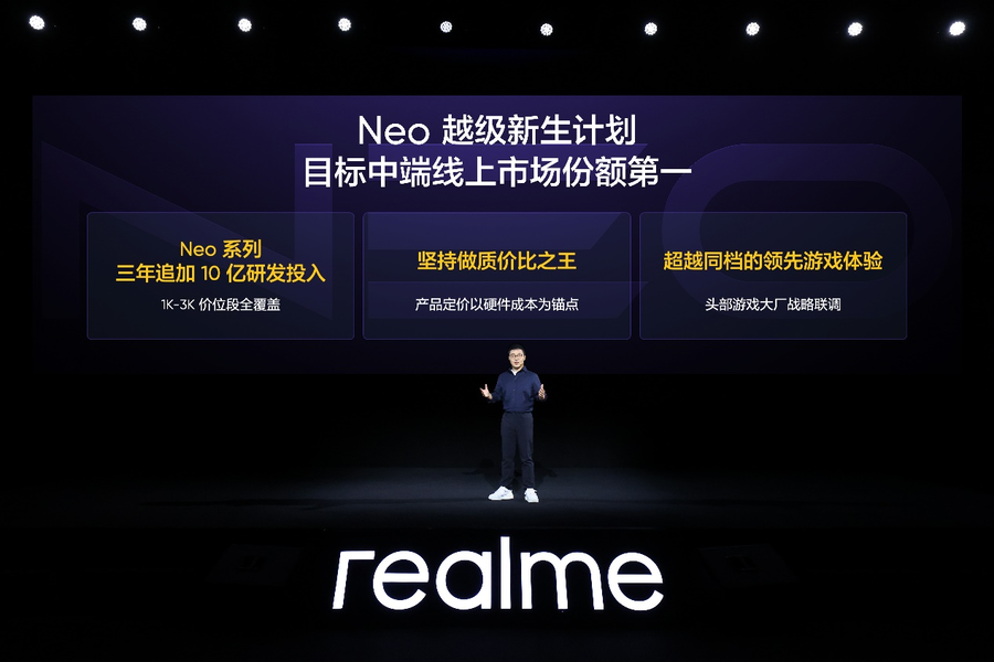 发布会上,真我realme副总裁、中国区总裁徐起公布真我产品线以及对Neo系列未来的规划。真我将聚焦GT和Neo两大王牌系列,其中,GT系列定位高端性能旗舰,领先的性能配置、流畅的游戏体验,代表真我更强的科技水平,Neo系列则定位中端电竞旗舰,将继续坚守越级性能、领先游戏体验和科技潮流设计三大标签,打造更懂年轻人的电竞旗舰。