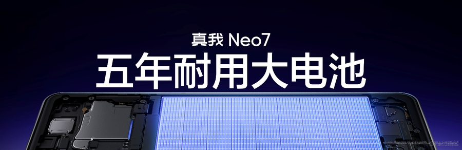 真我Neo7集大容量、轻薄、安全、五年耐用于一身,让7000mAh从梦想走进现实,引领行业进入7K续航时代。