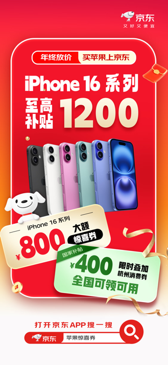 临近元旦跨年,Apple产品京东自营旗舰店针对iPhone机型开启了新一轮调价,带来至高800元惊喜券,还可叠加至高400元杭州消费券,iPhone 16系列至高补贴1200元,比11.11的优惠力度还大,也吸引了不少价格敏感型用户前来选购。感兴趣的话只需打开京东搜索“苹果惊喜券”即可直达主会场。