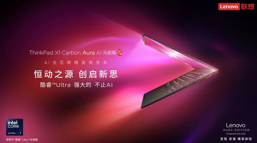 Aura系列是联想与英特尔联合研发打造的高端笔记本系列产品,ThinkPad X1 Carbon Aura AI元启版是联想Aura高端笔记本系列的先锋之作,具备“智能情景、无界互联、臻享服务”三大特征: