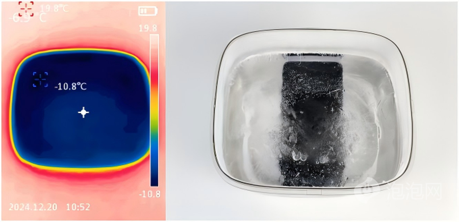 我们将手机在100%电量的时候将手机放入冰箱内开始冰冻,手机被冰冻的温度为零下10.8℃,从开始冰冻到从冰中取出耗时21小时,手机电量剩余95%,待机电量消耗仅5%,在低温情况下也没有出现电池异常消耗的情况。