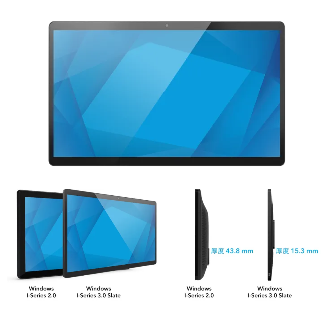 作为Elo明星产品之一的Windows触控一体机已上市近十年,从最初的2.0系列到现在的3.0系列Slate版本,有着显著的升级亮点。首当特性就是外型的成功 “瘦身”,源于其创新的无风扇和无散热孔设计,厚度从2.0系列的43.8mm缩减到15.3mm,机身更加轻薄纤巧,这在市面上众多 Windows 系统的一体机中相当少见。