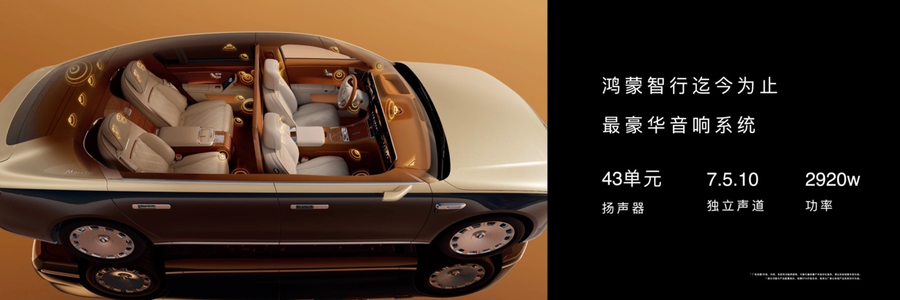尊界S800首发HUAWEI SOUND ULTIMATE华为悦彰非凡系列音响系统,7.5.10独立声道、43单元扬声器与2920W澎湃功率。寰宇星轨音网设计搭配立体浮雕工艺,新一代星环散射体让高音更清澈,磐石门低音让低音更震撼。首创4座4扬头枕音响、10天空声道与空间音分轨模型,使声音精准度较传统提升54%,实现每一座都是独立音乐厅的沉浸听音体验。