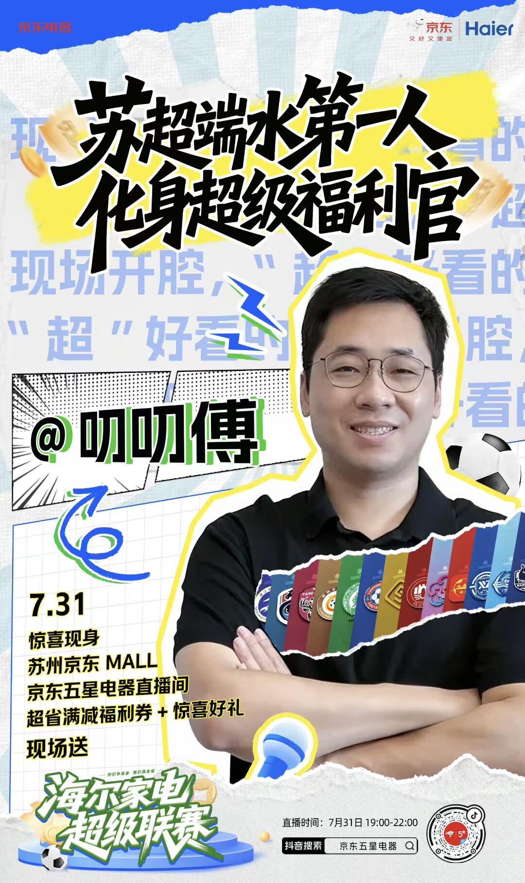 本周末,苏超比赛第八轮的战火重燃。常规赛接近尾声,积分榜榜眼之争波澜再起。在苏超的火热影响下,7月31日晚7点至10点,由京东MALL联合海尔卡萨帝(海卡)品牌共同打造的"808嗨fun潮电节"直播专场在苏州京东MALL火热开启,特别邀请到知名视频博主“叨叨傅"惊喜现身,携手四重福利大奖,通过趣味互动和产品演示,将活动福利与产品生动地呈现给观众。抖音搜索“京东五星电器”,直播间直击现场!苏州的小伙伴,速来门店亲临体验!