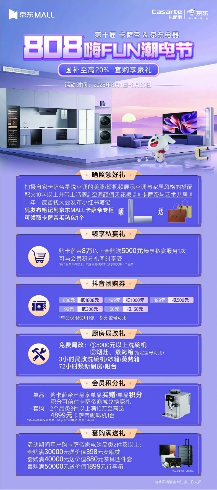 作为有13件不同城市的队服,自称是“唯一敢说自己是江苏人”的博主, 2020年叨叨傅在网络平台靠“散装江苏”的地域梗爆火,今年苏超期间更是被称为“苏超端水第一人”,其犀利又生动的表演将“散装江苏”的热梗玩到了新高度,同时也扩大了苏超的影响力。本次活动,叨叨傅将化身“超级福利官“现身苏州京东MALL的活动现场,为线上线下消费者发放福利:限时抢购低至1折大额券,更有"808元抵1808元"的超值代金券福利。值得关注的是,购买指定产品的消费者还可额外获得免费局部改造服务。为增强互动体验,直播特别设置了半点抽奖环节,多轮实物好礼放送,使活动备受期待。