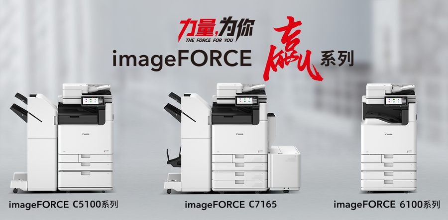 基于此,佳能自信地推出了imageFORCE赢系列C5100/6100/8100系列10款新品。该系列产品具备高效、可靠、安全、环保四大特点,旨在积极响应企业用户的核心需求。
