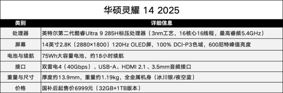 华硕灵耀 14 2025采用了14英寸2.8K OLED屏幕,配合180°开合转轴实现多场景应用,机身还经过了一系列严苛的品质测试,更加耐用。性能方面采用了酷睿Ultra9 285H,有着99TOPS的AI总算力加持的强劲AI性能。