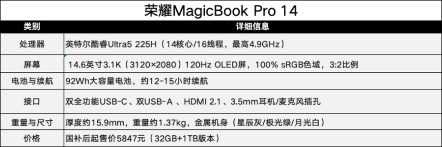 荣耀MagicBook Pro 14有着1.37kg超轻薄机身,配备了14.6英寸3.1K OLED屏,有着700nit峰值亮度与100% DCI-P3色域,3:2的生产力屏幕比例,使Excel表格能多显示8行数据。