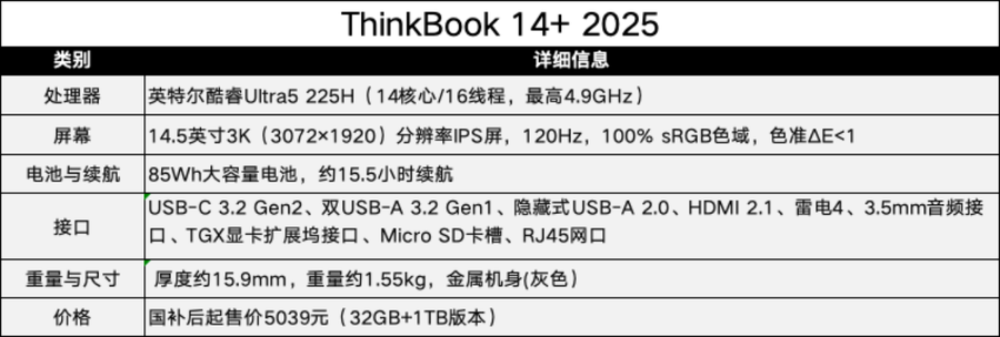 联想ThinkBook 14+ 2025在5000元档的轻薄本战场也是个不可忽视的存在,这块14.5英寸3K(3072×1920)120Hz IPS屏幕显示效果清晰锐利,搭配100% DCI-P3色域,修图剪片色彩精准无偏差。