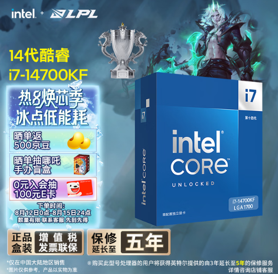 处理器:英特尔十四代酷睿 i7-14700KF 处理器(20 核 28 线程,5.6GHz 睿频)