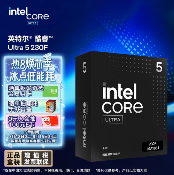 CPU:英特尔 酷睿 Ultra5 230F(10 核 10 线程,5.0GHz 睿频)