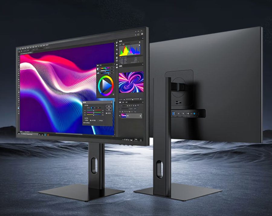 从硬件规格来看,这款显示器搭载了一块5120×2880分辨率的原生IPS面板,基础刷新率为60Hz,支持75Hz超频模式,兼顾细腻画质与流畅动态表现;亮度达500尼特,静态对比度2000:1,配合10.7亿色(8bit+FRC)的色彩输出,可覆盖99% sRGB、99% DCI-P3、95% AdobeRGB色域,能满足摄影修图、视频剪辑等专业场景的色彩精准需求。此外,屏幕表面采用AR(抗指纹)+AG(防眩光)+AF(抗反射)多重透光技术,有效减少环境光干扰与指纹残留,提升视觉舒适度。