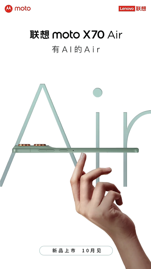 联想宣布将在10月底发布全新moto X70 Air,并通过预热视频提前透露了该机的三大亮点——轻、薄、AI。该机的设计显然针对的是苹果的iPhone Air,尤其是在轻薄的设计下,moto X70 Air带来了国内可以随时使用的AI功能,而iPhone Air虽然画了很多大饼,但相关功能至今仍未实现。这一差距使得moto X70 Air成为了国内市场上较为先进的选择。