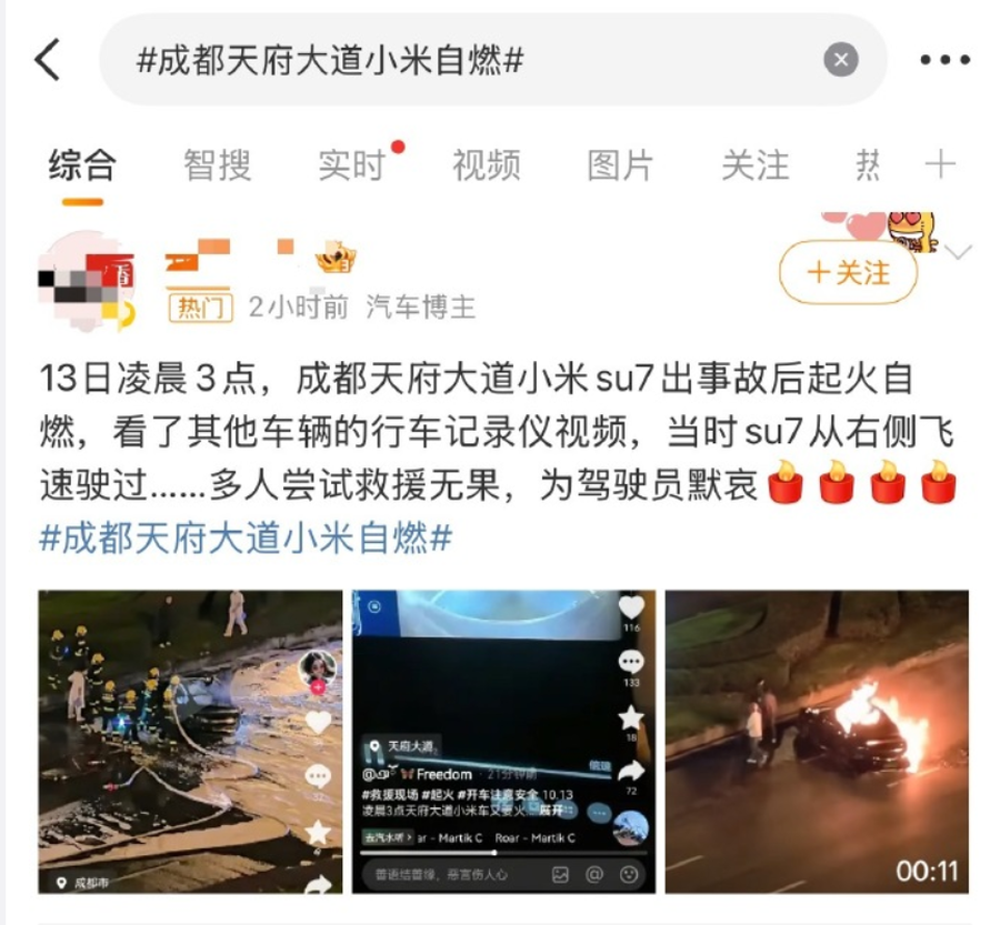 对于一些网友和媒体关注的“自燃”问题,虽然新能源车自燃的情况虽然时有发生,但并不是每一次事故都能简单归结为“自燃”。这次小米SU7的起火,是由剧烈碰撞引发的,碰撞后电池系统或其他部件可能出现了损坏,导致车辆起火。专业人士也指出,这种情况在传统燃油车以及新能源车中都有可能发生,关键在于碰撞的剧烈程度,而不是单纯的电池问题。