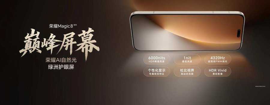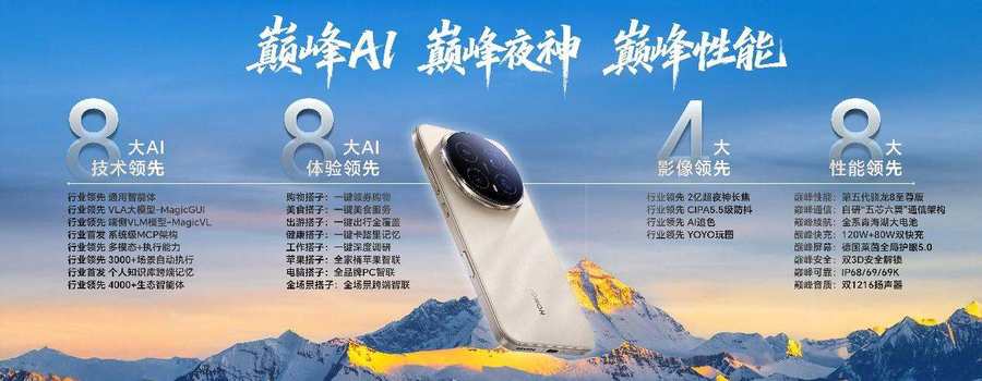 巅峰AI、巅峰夜神、巅峰性能,荣耀Magic8系列不仅是技术参数的进化,更是对下一代AI终端的深刻理解和完美诠释,开启自进化AI原生手机的新时代。以“自进化AI”为脑、以“AiMAGE影像”为眼、以最强性能硬件为体,荣耀Magic8系列创造了一个真正懂用户、为用户、与用户共生共创的万 能智慧搭子。在AI发展进入深水区的今天,荣耀Magic8系列正以其全面的AI科技领先性,引领旗舰手机的进化方向。