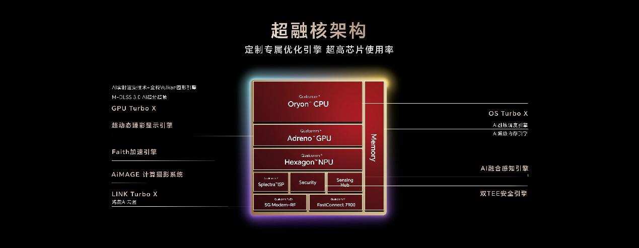 荣耀Magic8全系搭载年度最强旗舰芯片第五代骁龙®8至尊版,CPU、GPU和AI算力相比上一代都有大幅提升,性能跑分具有领先跨代表现。荣耀与高通自2022年成立了联合实验室,共同深耕新一代AI与芯片底层技术,针对芯片的各个模块定制专属优化引擎,实现超高芯片使用率。