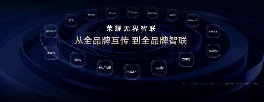 在荣耀Magic8系列上,“荣耀分享”进化至“荣耀无界智联”,全品牌互传进化至全品牌智联,包括鸿蒙和iOS生态在内的全品牌、全设备都可以加入荣耀信任环,实现智能体跨端智联的革命性体验。