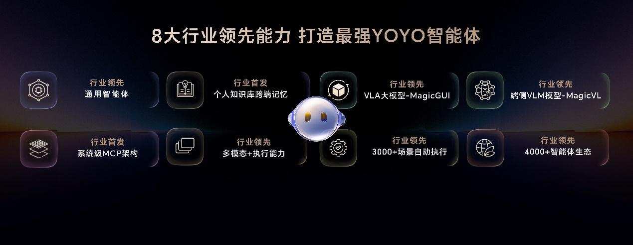 在强大技术基座支撑下,万 能的YOYO具备两大核心超能力:YOYO看见和YOYO执行。YOYO看见有着行业最强的AI智慧视觉体验,YOYO执行具备行业最强的AI执行引擎。荣耀Magic8系列本次全系搭载了一颗AI按键,一键长按,就能启动YOYO看见,开启与YOYO的视频通话,进行智能体应用交互。