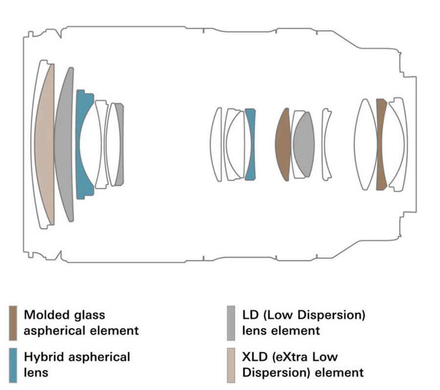 Tamron 25-200mm F2.8-5.6 Di III VXD G2采用14组18片光学结构,其中包含1片XLD超低色散镜片、2片LD低色散镜片、2片GM玻璃模造非球面镜片以及2片混合式非球面镜片。得益于这些特殊镜片,新镜头不仅具备优秀的成像质量,还能有效控制体积与重量。