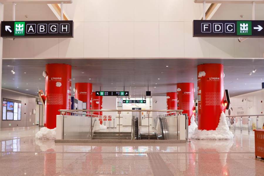 知名存储品牌金士顿近两天以“唯快不破”为主题,将北京工人体育场站与团结湖站的地铁空间打造成一个充满未来感的潮流互动现场,成功打破了传统硬件品牌的宣传边界。在工人体育场站D口,产品与“火箭喷射”立体造型巧妙融合,动态火焰灯效营造出强烈的视觉冲击,仿佛破壁二次元;而团结湖站H口矗立的高达3米的巨型金士顿机箱,则以极具压迫感的实体装置,成为吸引乘客驻足拍照的打卡地标。