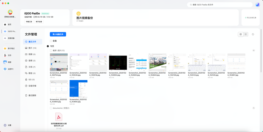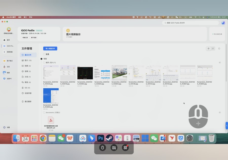 跨端协同能力的升级让多设备交互更无缝。通过vivo办公套件,平板能与PC和Mac实现互联,可以在电脑上随时调用平板中的文件,也可以实现文件的快速互传。