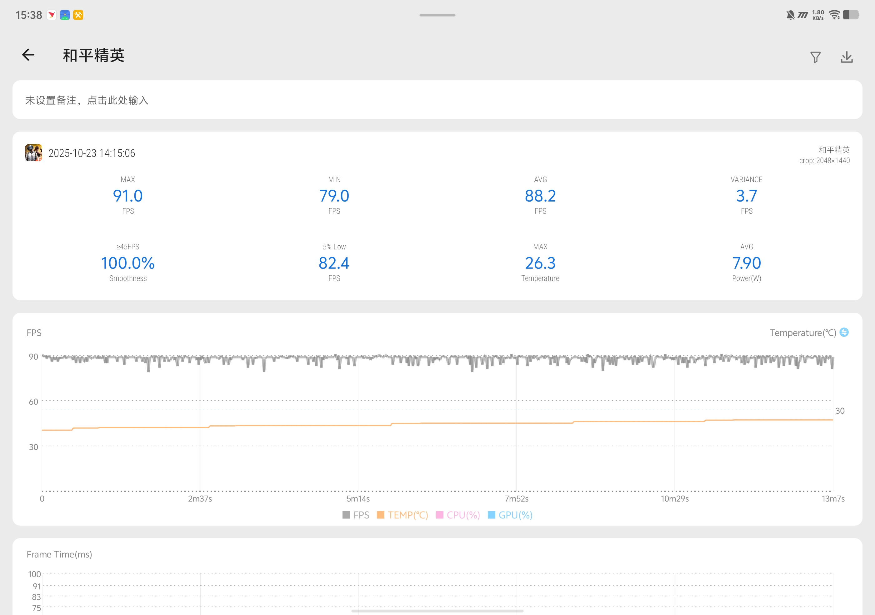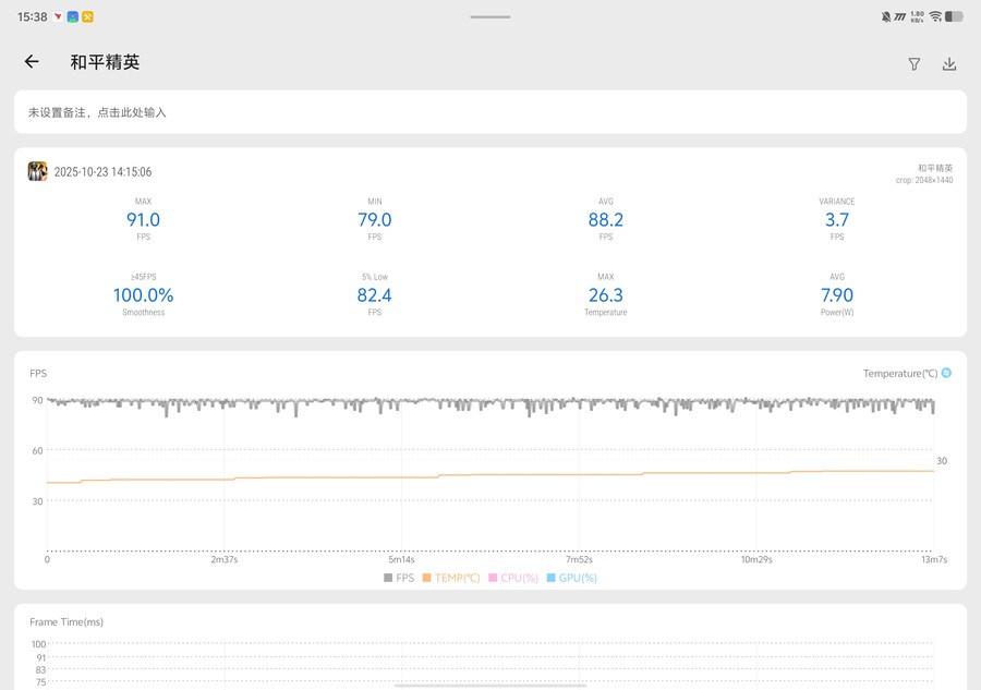 游戏场景中,这款平板的表现尤为亮眼。《和平精英》开启游戏超分后,画面细节丰富,游戏仍然能够以平均88.2FPS的帧率流畅运行,落地刚枪,乘坐载具移动在P城等场景下都没有出现卡顿。