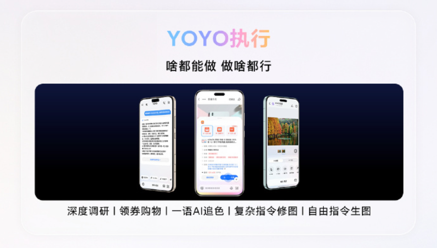娱乐与消费场景中,面对年轻人晒图修图难的问题困扰,无论是复杂的色彩调整、瑕疵修复还是天马行空的生图想象,用户只需打开YOYO一句话就能完成。而当遇到喜欢的商品想购买时,YOYO还能一键领取隐藏优惠券,帮你以最低的价格下单购买。可以说YOYO已经进化为用户衣食住行购的全能搭子。