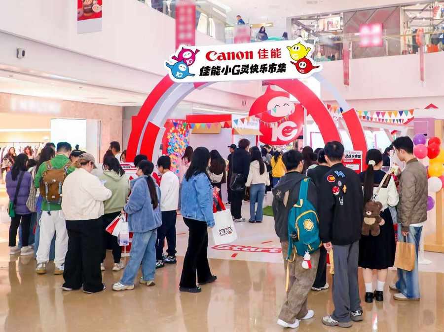 “佳能小G灵快乐市集”吸引众多顾客驻足参与,沉浸式享受打印乐趣
