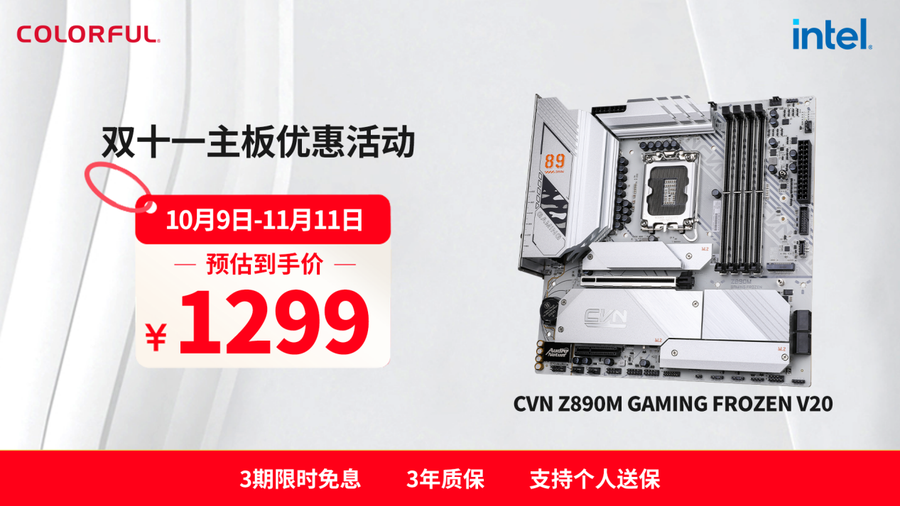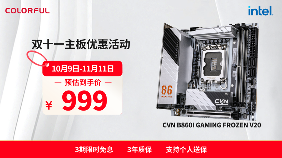 传送门:CVN B860I GAMING FROZEN V20 登陆舰主板 活动到手价999元