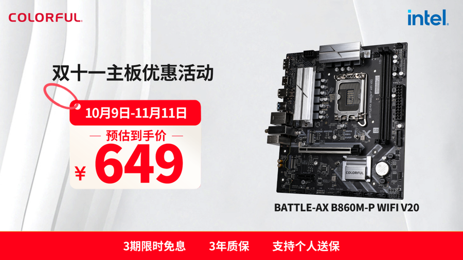 传送门:BATTLE-AX B860M-P WIFI V20 活动到手价649元