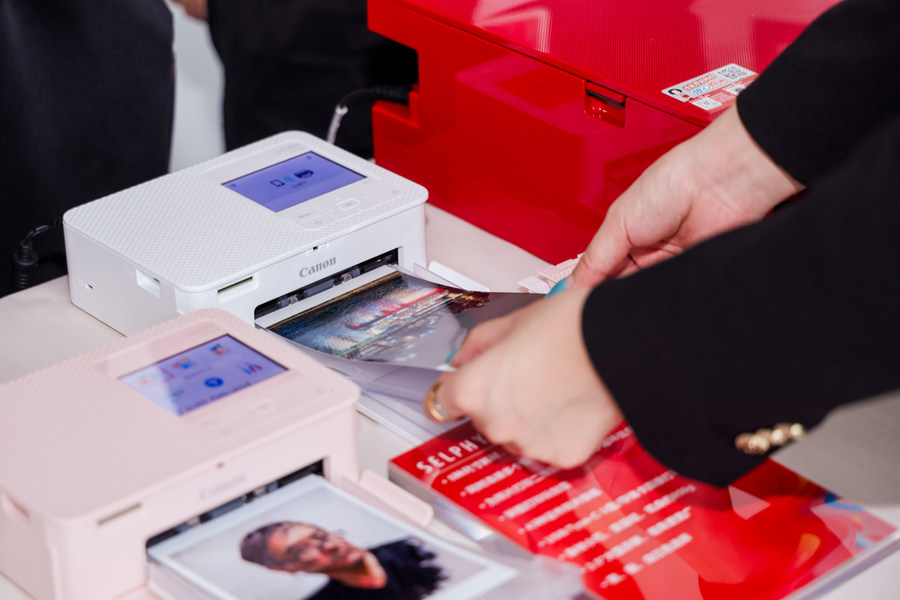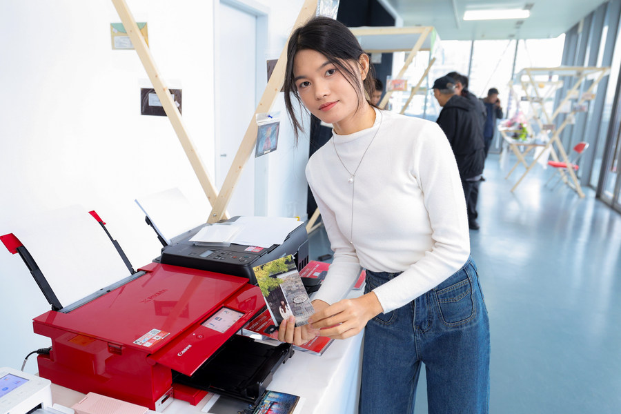 在展览期间,佳能还举办了时尚秀,模特所穿服装的创意源自摄影师拍摄的动物形象,突破传统边界,为观众呈现出一场从奇幻到自然的视觉盛宴。此外,艺术公园精心打造了影像市集,汇聚徽章DIY、照片涂鸦等多个充满创意的互动体验摊位。现场展出佳能炫飞SELPHY CP1500小型照片打印机、佳能智能触屏照片一体机TS8380t和佳能6色加墨式照片一体机PIXMA G680,观众可以将摄影作品通过二次创作转化为创意相册、徽章、明信片等纪念品,体验影像打印的乐趣。