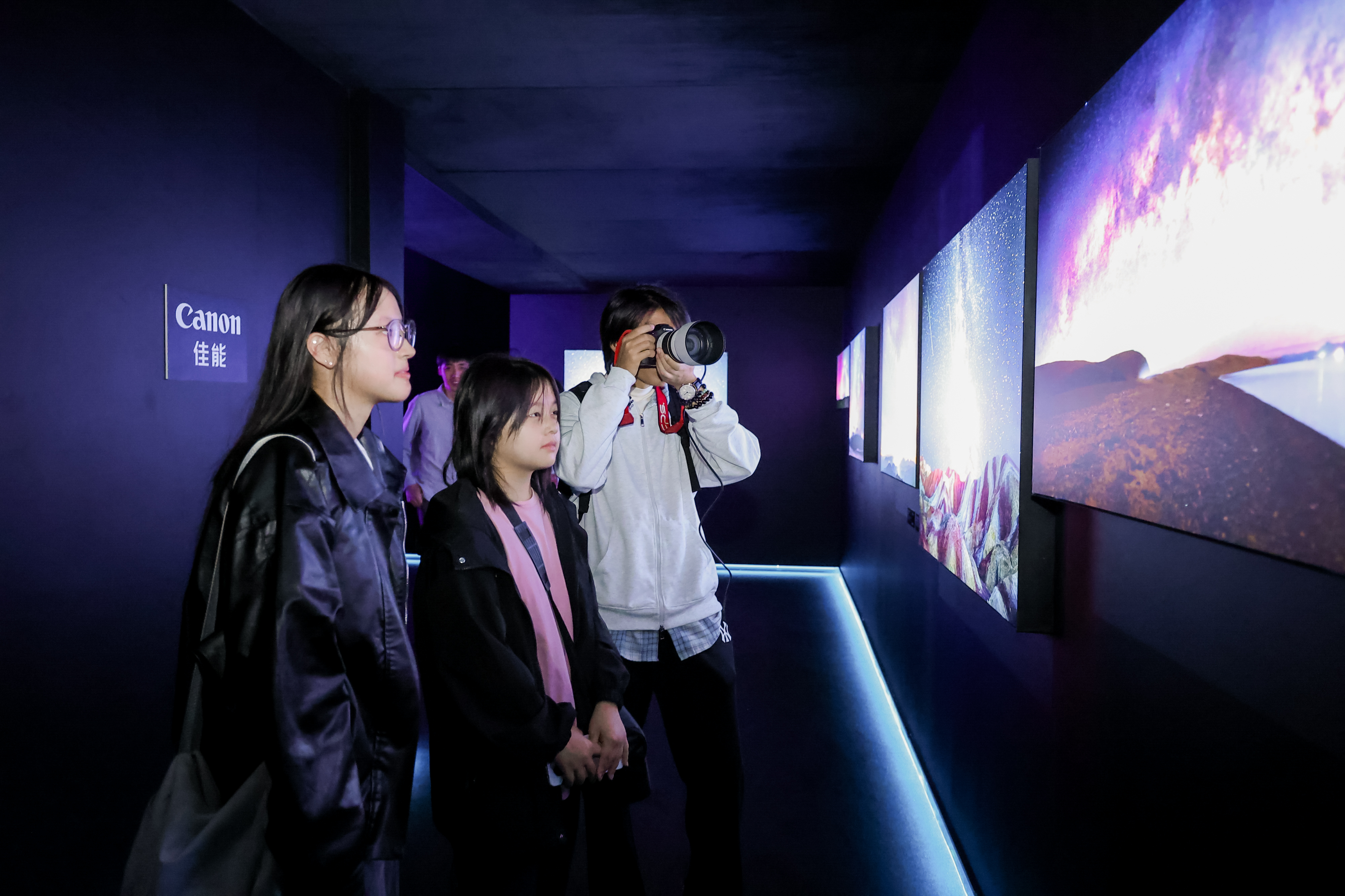 EOS影像艺术公园以多元化的艺术公园为主题,为参观者打造了一个集视觉享受、文化体验与创意灵感于一体的综合性艺术空间。展示的影像作品涵盖文化遗产类的文物摄影、自然生态类的黑水摄影、动物和人像摄影,罕见天文气象类的极光和地球维纳斯带摄影,题材十分丰富。展出的影像作品借助沉浸式投影与空间音效等艺术装置,使影像转化为可感知的情绪场域,让观众在观看、聆听与触摸中,与摄影作品背后的故事产生情感共振,发现影像的独特魅力。