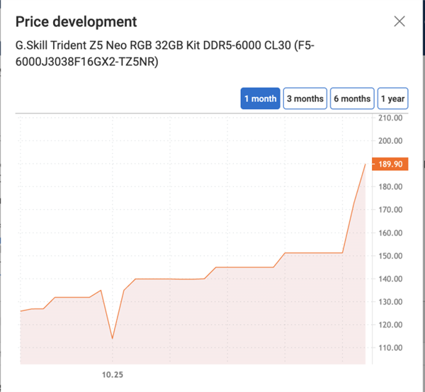 目前三星、SK海力士、美光这些顶级DRAM厂商已经开始酝酿30%的涨价幅度!16GB DDR5模块价格连续上涨,部分型号一个月涨幅高达40%。