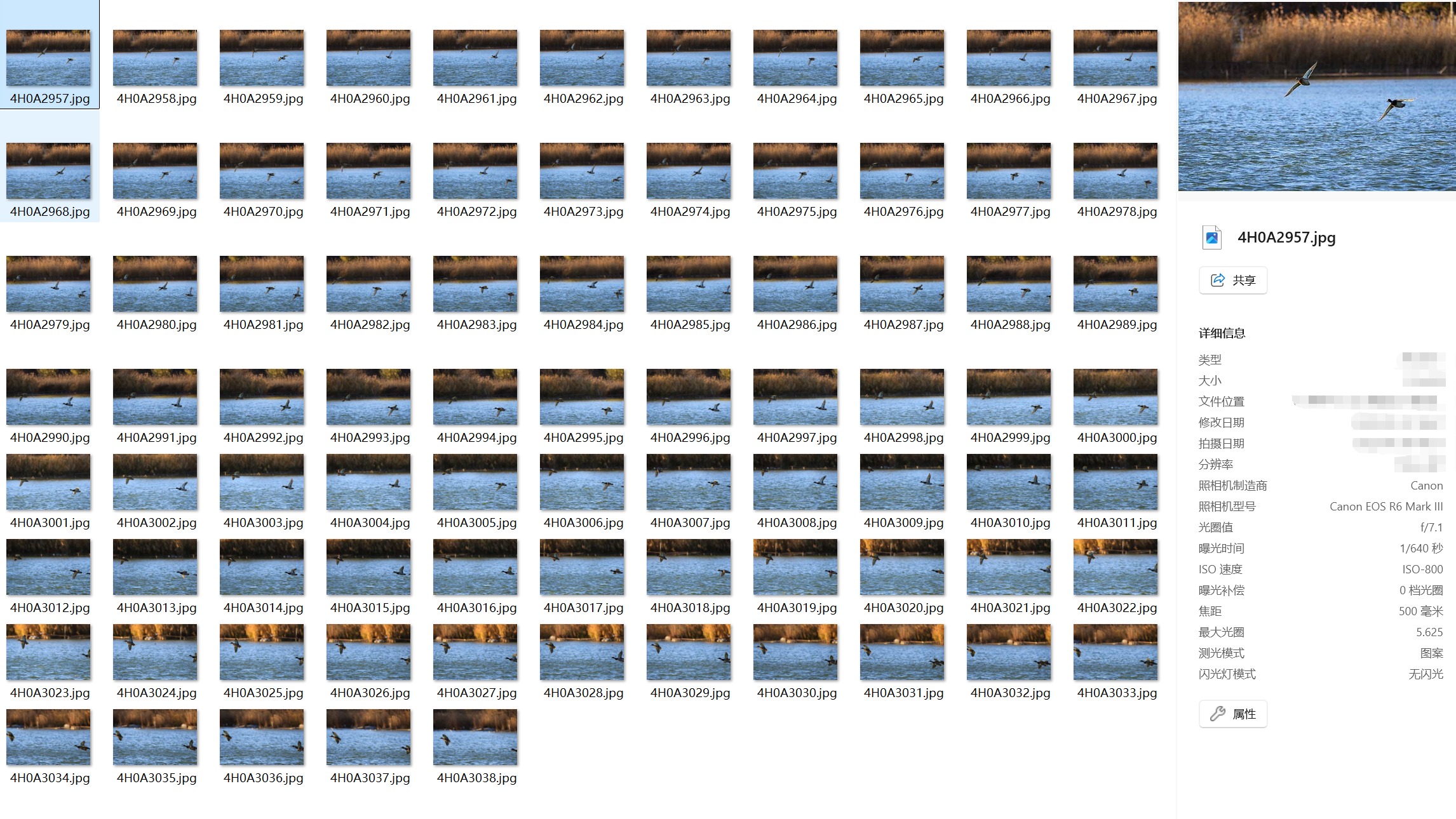 EOS R6 Mark III新增的预拍摄功能也非常令人惊喜,能够记录按下快门前半秒内的15张照片,确保不错过任何精彩瞬间。以上面拍摄的这组喜鹊起飞照片为例,在我按下快门时,肉眼捕捉到的已经是喜鹊飞至画面边缘的瞬间。然而,回看照片时,相机却完整记录了喜鹊从起飞到离开画面的整个过程。预拍摄功能对于生态摄影而言无疑是一大福音,再结合EOS R6 Mark III极具性价比的售价,相信能让更多摄影爱好者轻松体验生态摄影的乐趣,捕捉大自然赋予的每一个精彩瞬间。